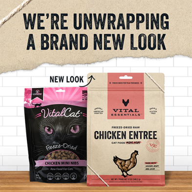 VITAL ESSENTIALS FREEZE-DRIED RAW CHICKEN ENTREE CAT FOOD MINI NIBS 12 OZ