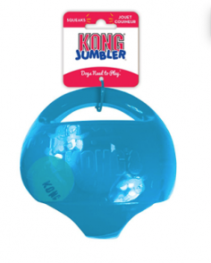 The Kong Jumbler is a two-in-one ball toy for twice the interactive fun. The interior tennis ball and loud squeak entice play, while the handles make pickup and shaking easy. The Jumbler stands up to tough play, making it deal for games of fetch. The Kong Jumbler will ensure an exciting and active play session for you and your dog.
