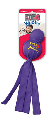 The Kong Wubba  Original is a fun, interactive tug and toss toy that is great for interactive or solo play. It's floppy tails are ideal for shaking and tugging instincts as well as games of fetch. A durable reinforced nylon exterior combined with unique ball shapes for play sessions that last longer.