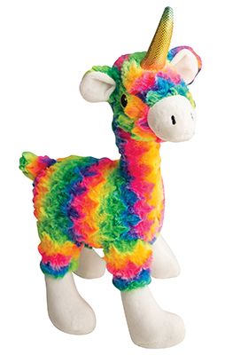 Momma Llama isn’t just any llama – she’s a cool llama! She is made of a super-soft, plush tie-dye material and has an iridescent unicorn horn. Her insides are full of crinkly material and hidden squeakers for added sounds and effects during playtime. Your pup will love her fun features and cuddly nature.
