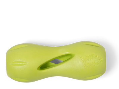 Qwizl is a super tough treat toy that's brilliantly designed to extend the life of expensive dog treats while keeping dogs busy. Side openings release scent and taste while the continuous interior hole allows treats to extend out. Flexible ridges grip multiple sizes of treats.