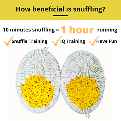 PawzNDogz presents various designs of Snuffle Mats that will keep your fur baby's brain active and stimulated ! Hide some dry food / treats in the folds of the snuffle mat / toy and watch your dog hunting them by using their "sniffing skills" to locate the tasty stuff. The soft yet durable machine-washable snuffle mats / toys have multiple level of challenges embedded in the designs to tire your pup / dog absolutely by burning their energy via sniffing. These snuffle mats not only are energy consumers and boredom-killers, but also function as slow feeding toys to prevent your dog from gulping down food in a jiffy. The slow feeding process reduces the speed of eating by 5x - 10 x and 10 minutes of snuffling is approx equivalent to 1 hour of running !