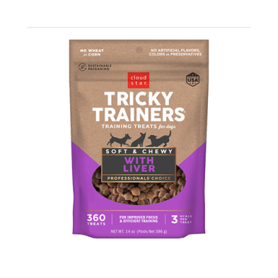 Cloud Star Tricky Trainers has been the choice of professional trainers since 1999, with irresistible flavor to keep dogs’ attention, low calories, and deliciously soft and chewy texture. Each bite-size treat is packed with wholesome ingredients like natural chicken liver, and no corn, wheat, artificial colors or flavors, so you can feel good about rewarding their good behavior - while training or any time!
