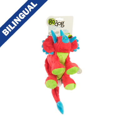 GODOG DINOS SQUEAKY DINO FRILLS RED LARGE DOG TOY